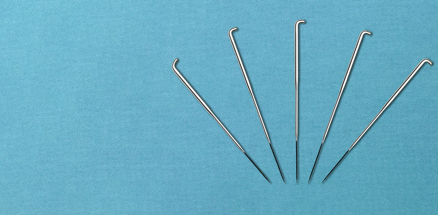 三維模壓成型的G型和GB型鉤刺可延長刺針的壽命。常用無紡刺針每一棱帶三個鉤刺,在一些用底布材料的特殊用途上,只在一棱或兩棱上帶鉤刺。彎柄方向可以是偏左或偏右以縱向或橫向保護底布材料,將損害減至最低,無紡刺針的方向視帶鉤刺棱邊的位置而定。